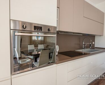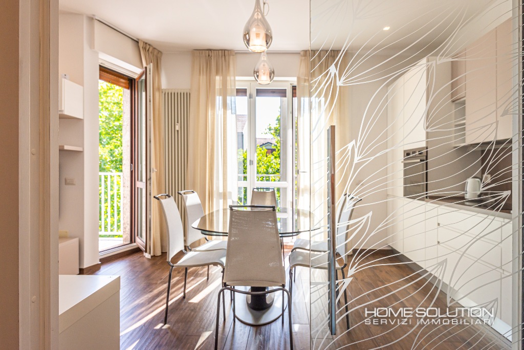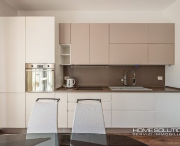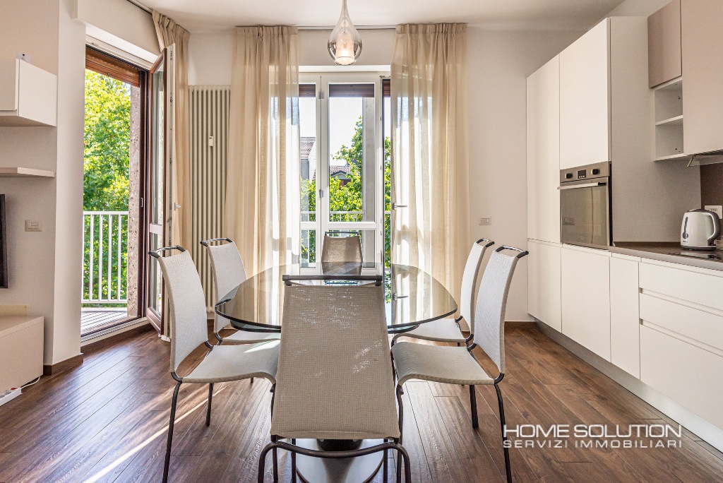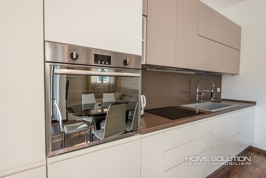 - Una cucina a vista moderna che si apre su una graziosa balconata – il tuo angolo di serenità urbana